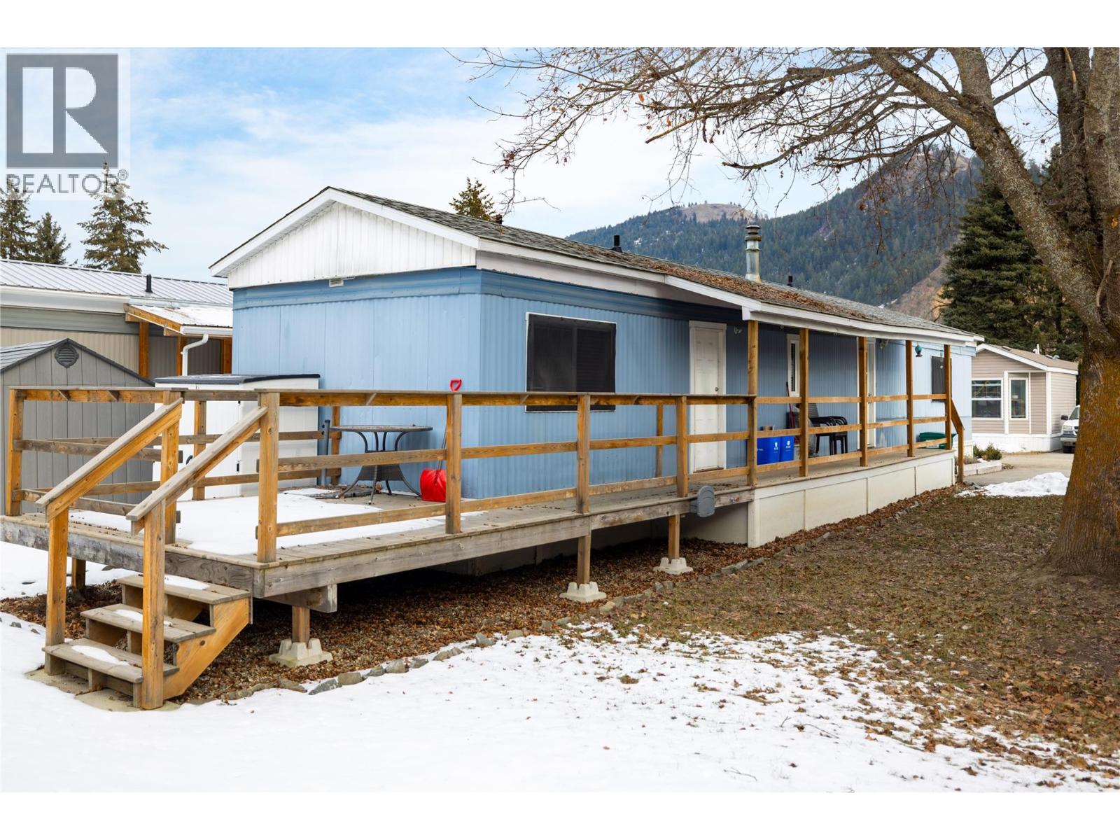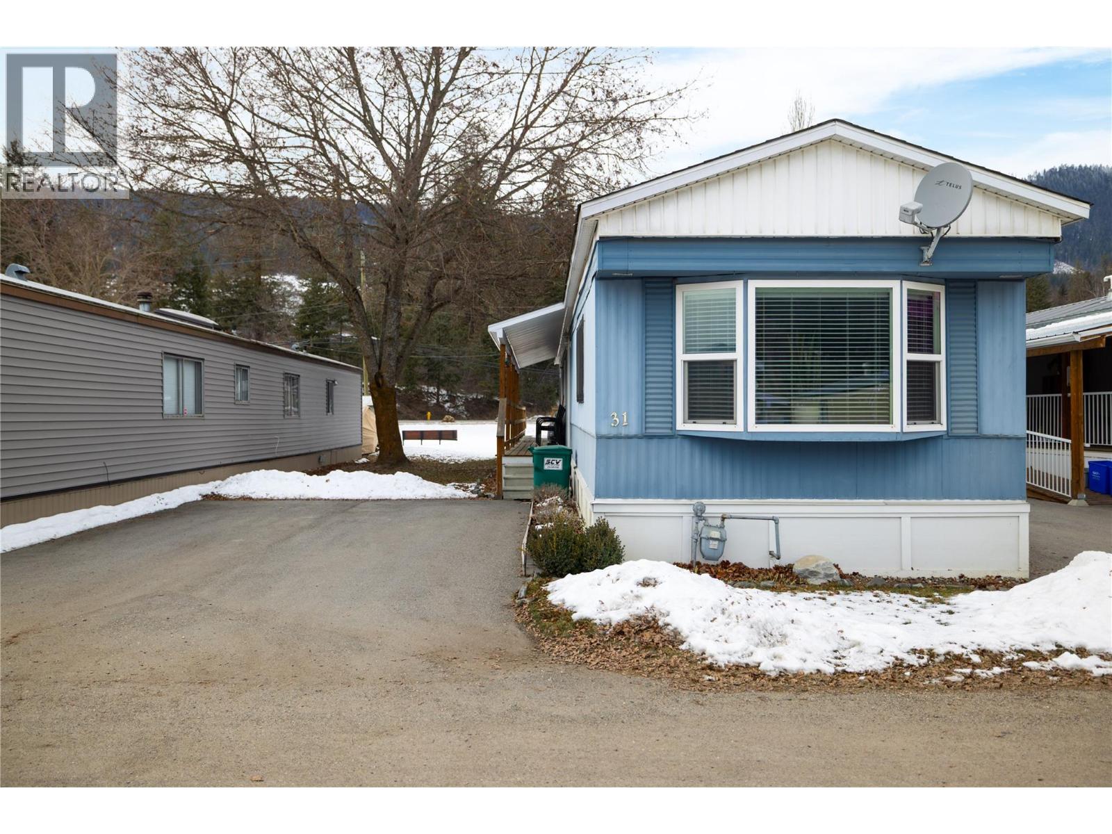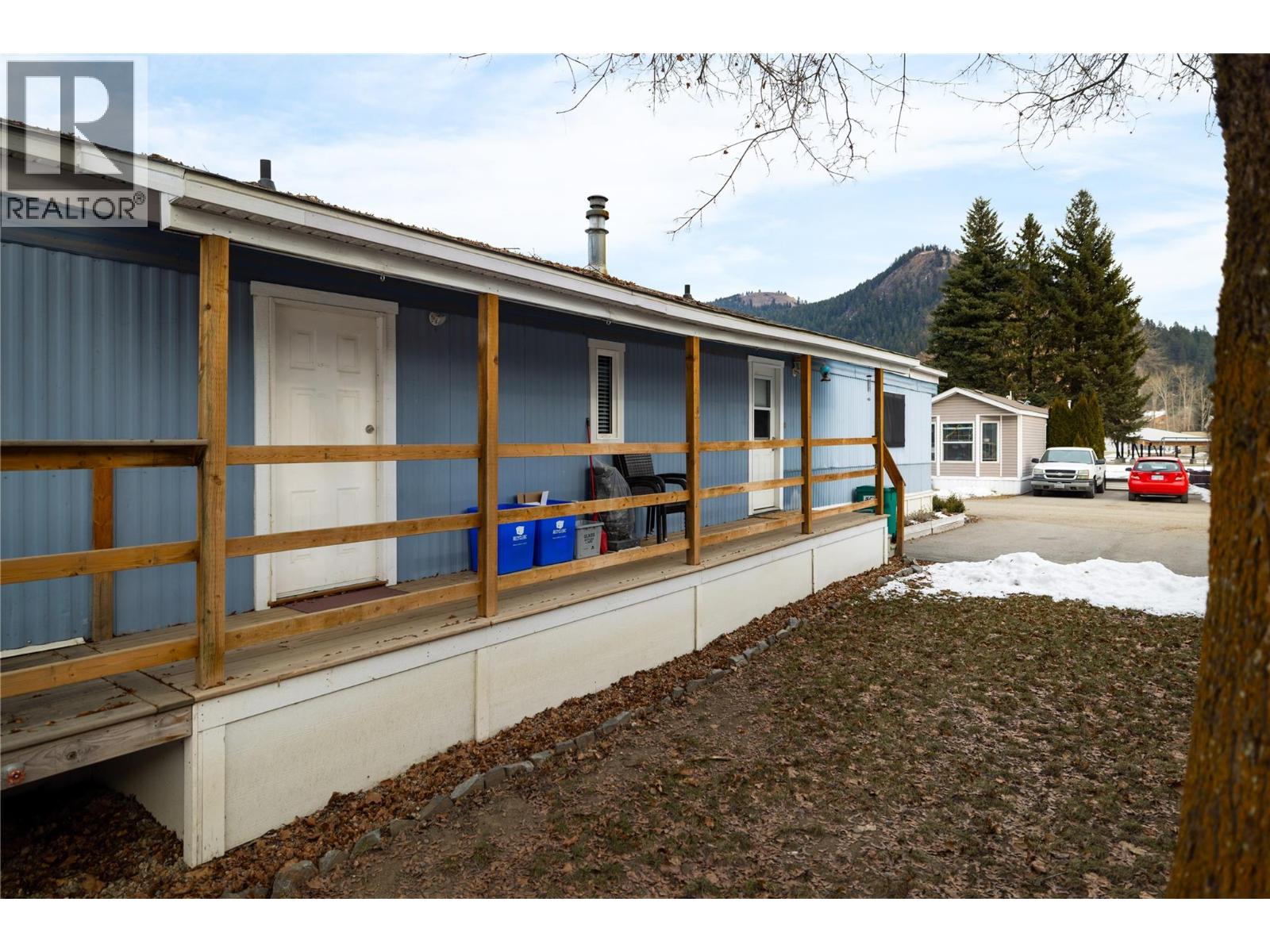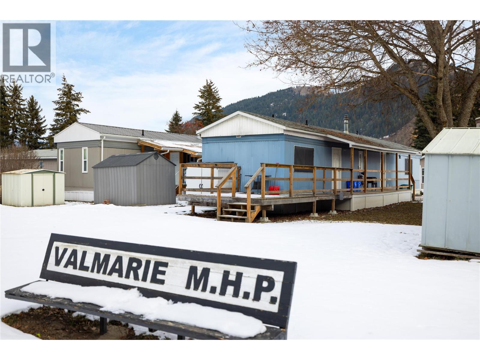 This charming 2-bedroom, 1-bathroom mobile home in Valmarie Mobile Home Park offers a bright and functional living space spanning approximately 900 square feet. The interior features a spacious living room highlighted by a classic bay window that brings in plenty of natural light, while the adjacent dining area includes built-in cabinets for convenient storage. In the kitchen, you will find a dedicated pantry that helps keep the space organized and efficient for daily meal prep. The home has been thoughtfully updated, particularly in the full bathroom which boasts a modern floating vanity and sink along with a bathtub and shower. The primary bedroom is well-sized and includes a large double closet as well as a secondary private entry directly into the bathroom for added convenience. Additionally, the layout includes a second bedroom, in-unit laundry, and a utility room, while the exterior offers a rear deck that is perfect for outdoor relaxation. 1 cat allowed only -- no dogs. Located in the heart of Lumby, this property is within easy walking distance to all local amenities and backs directly onto the school, making it an ideal spot for those seeking convenience. The park has no age restrictions, offering a welcoming environment for all residents. With a 25-minute drive to Vernon and a 53-minute drive to Kelowna International Airport, this home provides a peaceful small-town lifestyle without sacrificing easy access to major urban centers and travel hubs. (id:4069)
