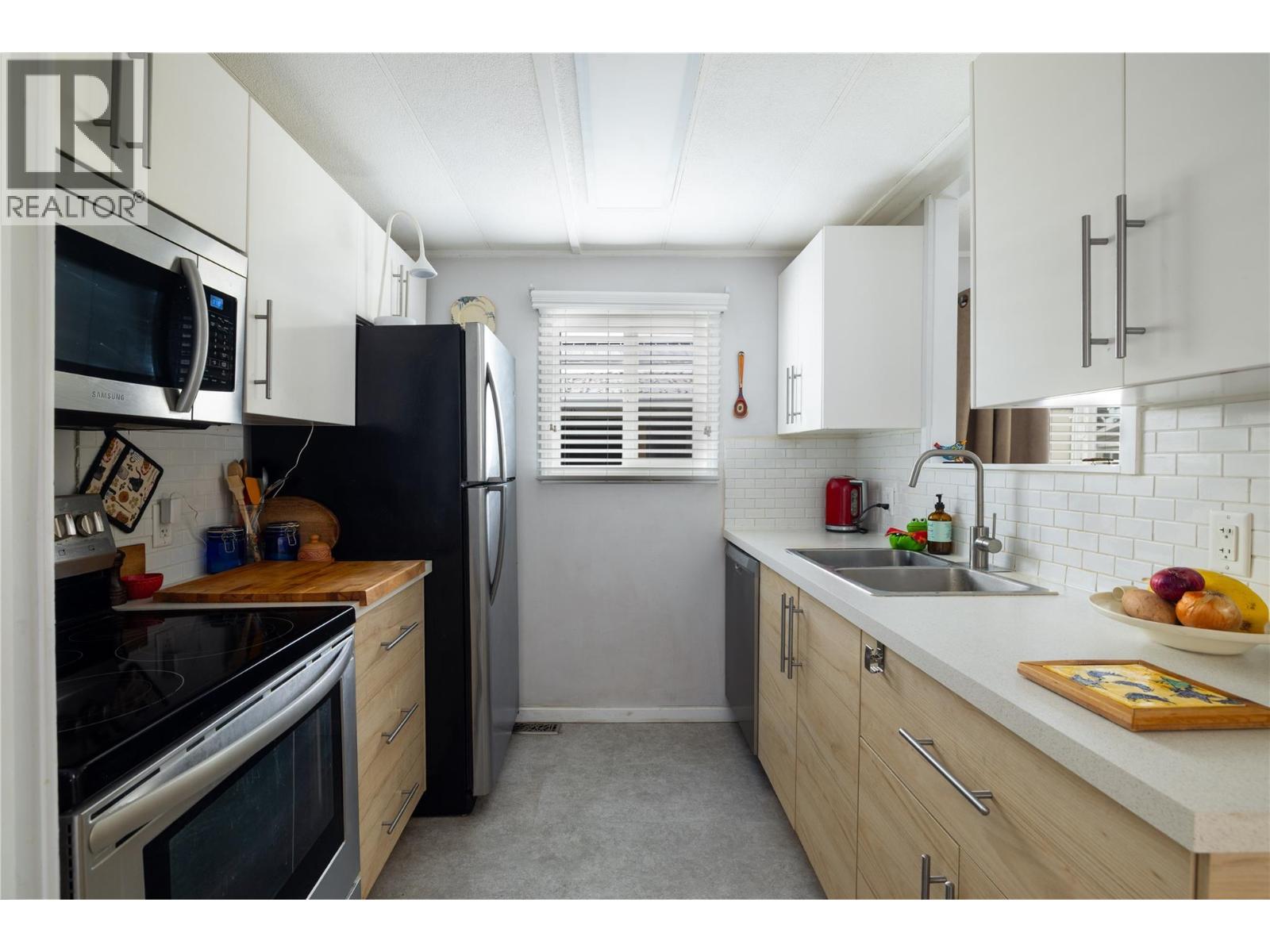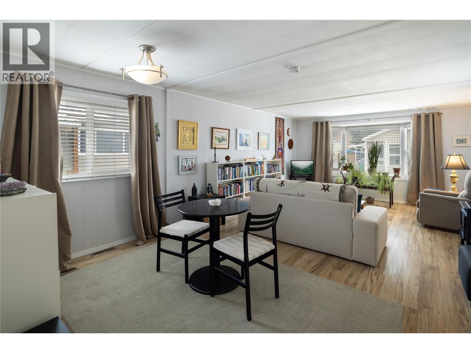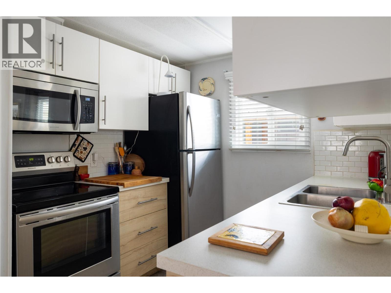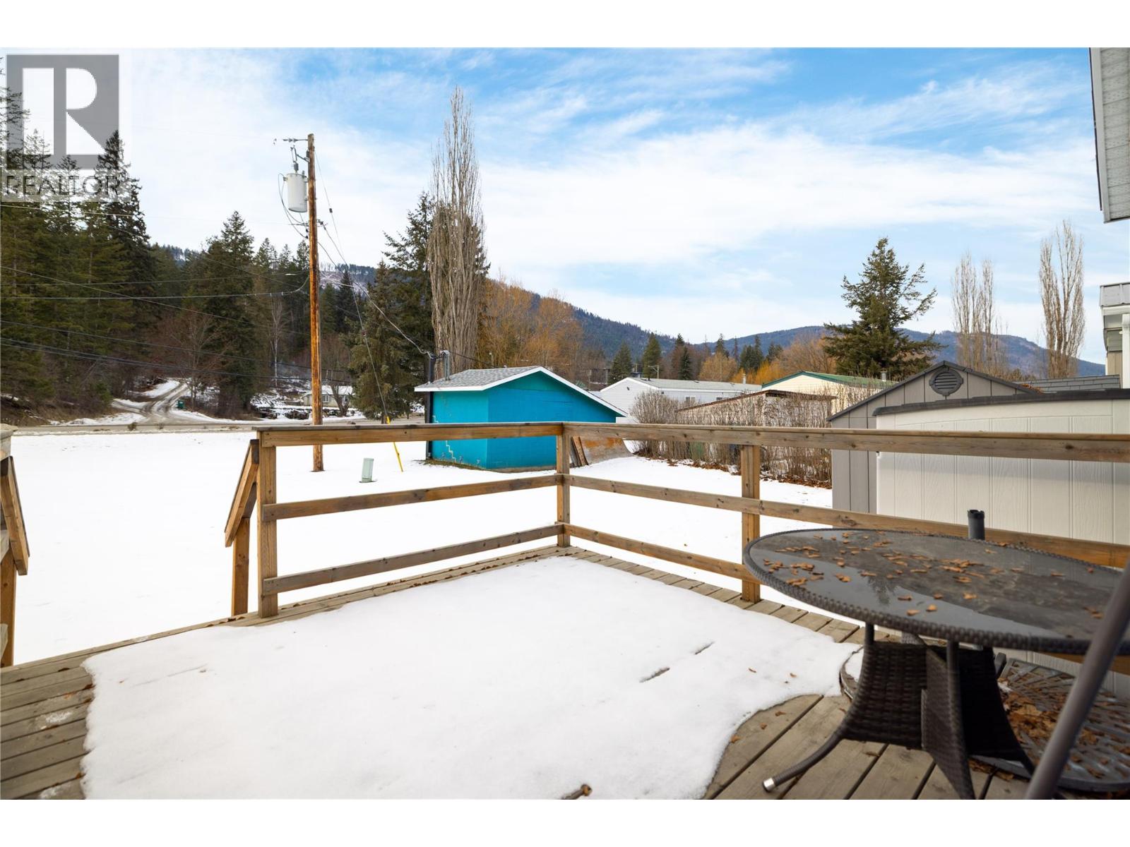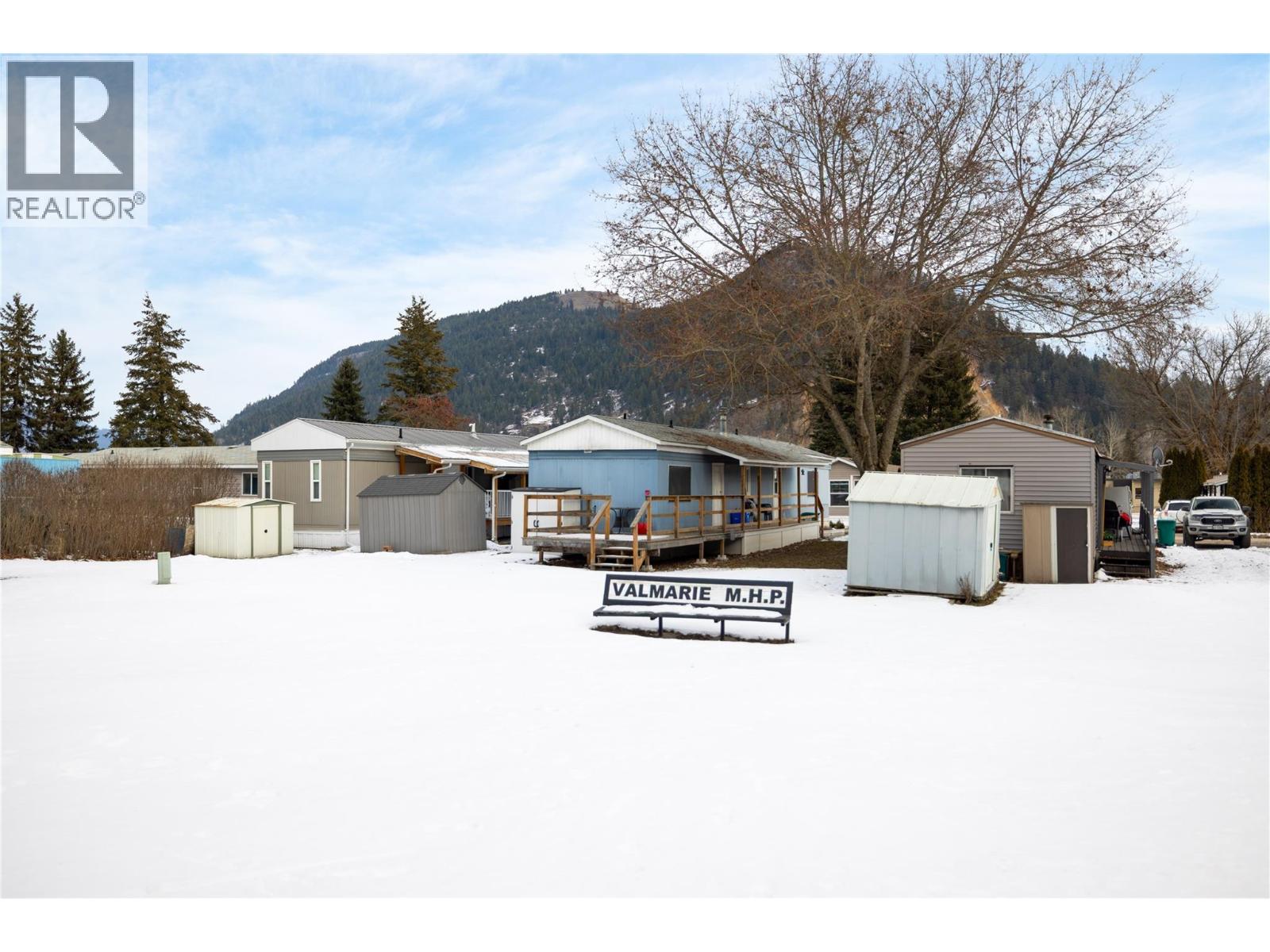 This charming 2-bedroom, 1-bathroom mobile home in Valmarie Mobile Home Park offers a bright and functional living space spanning approximately 900 square feet. The interior features a spacious living room highlighted by a classic bay window that brings in plenty of natural light, while the adjacent dining area includes built-in cabinets for convenient storage. In the kitchen, you will find a dedicated pantry that helps keep the space organized and efficient for daily meal prep. The home has been thoughtfully updated, particularly in the full bathroom which boasts a modern floating vanity and sink along with a bathtub and shower. The primary bedroom is well-sized and includes a large double closet as well as a secondary private entry directly into the bathroom for added convenience. Additionally, the layout includes a second bedroom, in-unit laundry, and a utility room, while the exterior offers a rear deck that is perfect for outdoor relaxation. 1 cat allowed only -- no dogs. Located in the heart of Lumby, this property is within easy walking distance to all local amenities and backs directly onto the school, making it an ideal spot for those seeking convenience. The park has no age restrictions, offering a welcoming environment for all residents. With a 25-minute drive to Vernon and a 53-minute drive to Kelowna International Airport, this home provides a peaceful small-town lifestyle without sacrificing easy access to major urban centers and travel hubs. (id:4069)